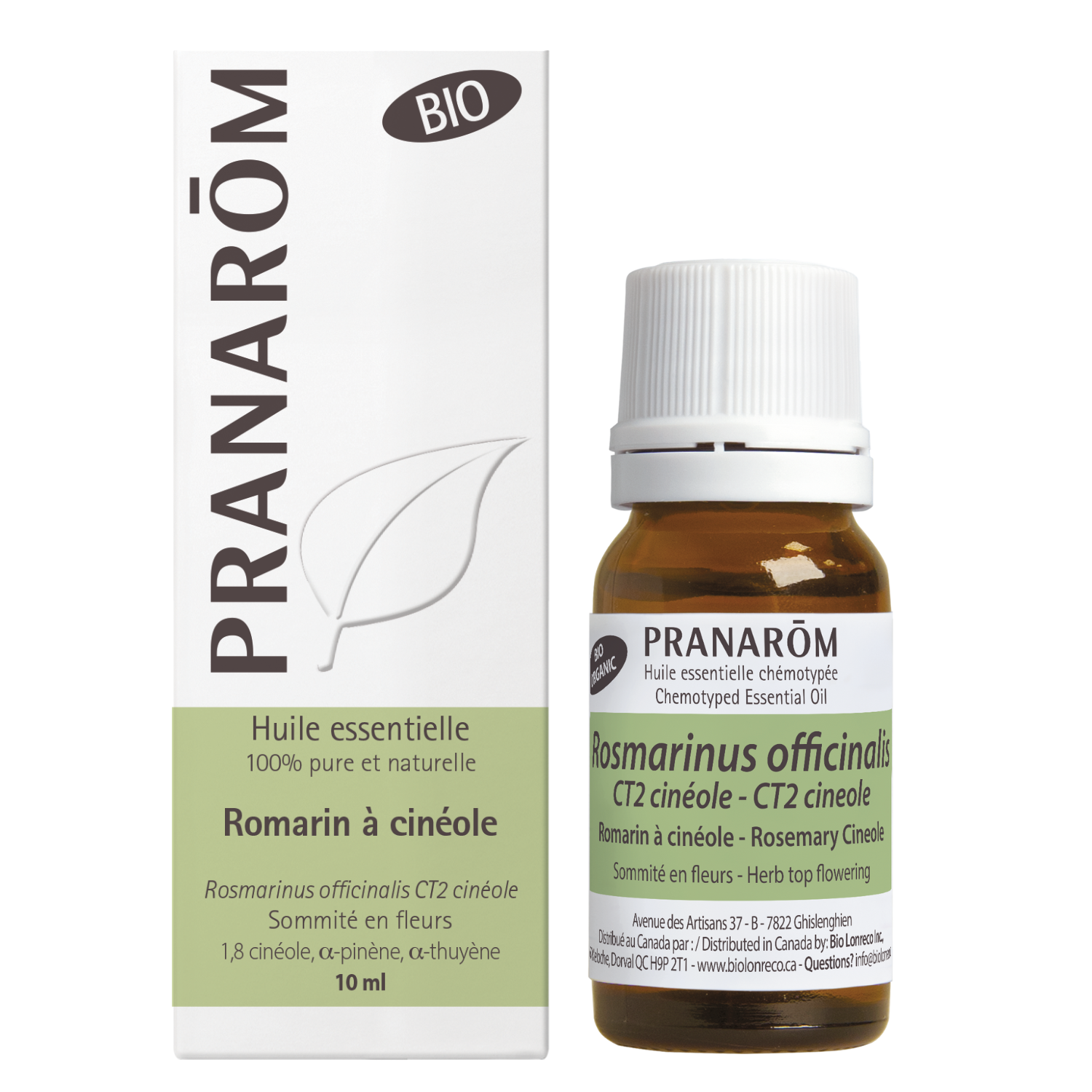 Huile essentielle chémotypée 100% pure et naturelle – biologique Rosmarinus officinalis CT2 cinéole – Sommité en fleurs1,8 cinéole, a-pinène, a-thuyène L’huile essentielle de romarin...